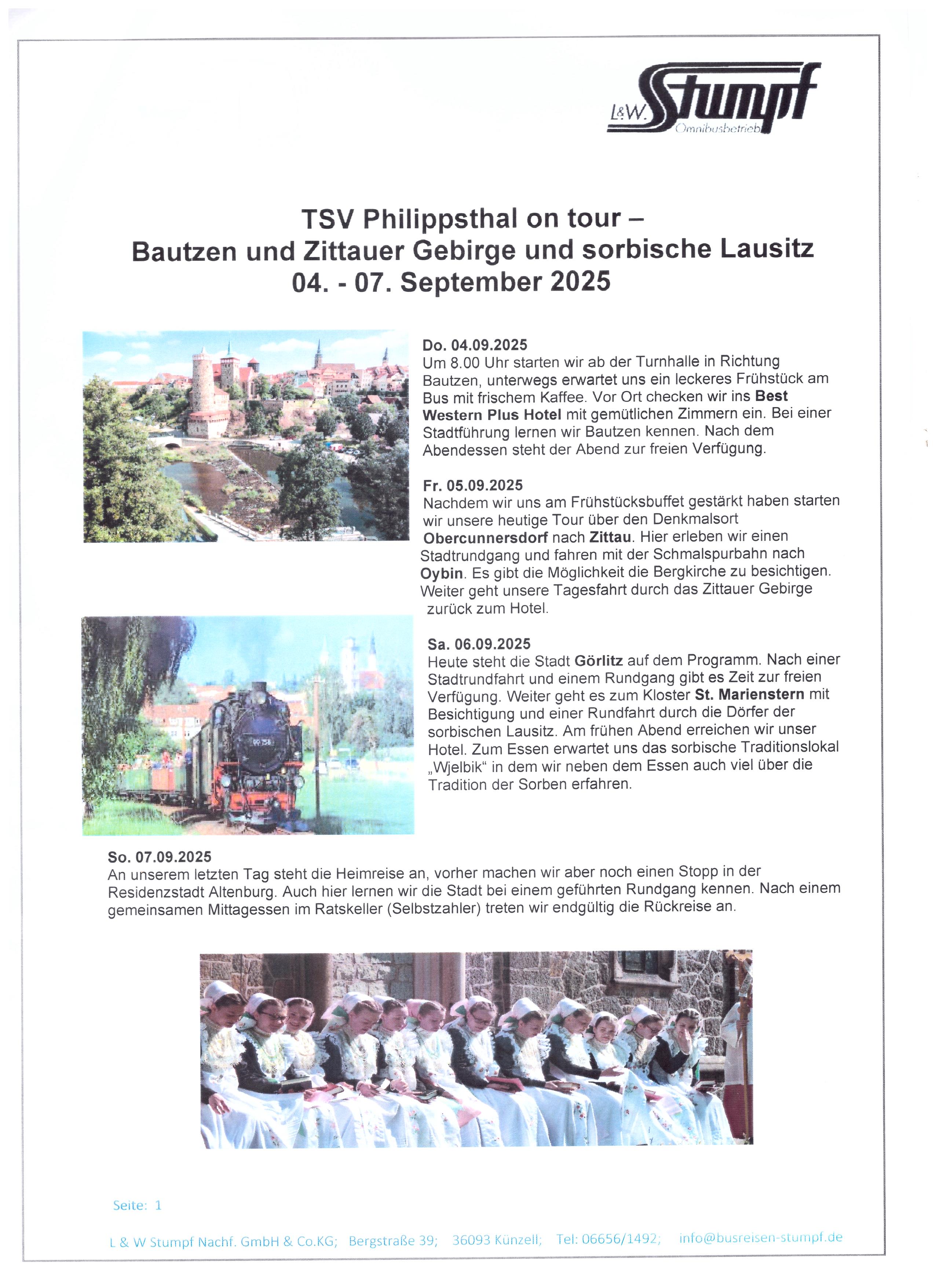 Der TSV 1902 Philippsthal führt vom 04.09.-07.09.2025 wieder eine Vereinsfahrt durch.